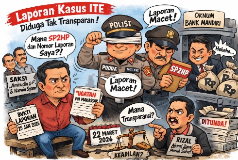 Tapakbatas.com – Seorang pelapor sekaligus korban dugaan tindak pidana ilegal akses melalui sistem elektronik (ITE) oleh Salah satu Oknum Perbankan kepada Wandy Roesandy, mengaku kecewa terhadap proses penanganan laporannya di Polda Sulawesi Selatan.